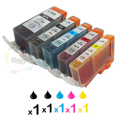 1x Canon PGI-525Bk (tlustá černá 21ml) a 4x Canon CLI 526 barva (černá, žlutá, červená, modrá, 4x 10ml).